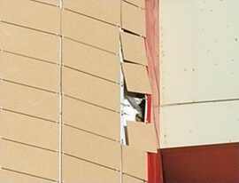 Использование для устройств фасадов несистемных решений, в том числе материалов, предназначенных для внутренней отделки помещений (например профилей или гипсокартона)